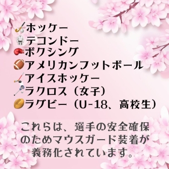 ホッケー、テコンドー、ボクシング、アメリカンフットボール、アイスホッケー、ラクロス、ラグビーは、インターハイに出場するにあたり、義務化されており、