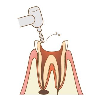具体的には状況は違うのですが、大きく穴を開けて神経のある場所の消毒を行います。